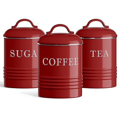 Red tea coffee and sugar canisters can add warmth, and earthiness and brighten your kitchen space. If you’re nervous about going too bold with this colour but still want that vibe, kitchen storage accessories can add a dash of the colour without going overboard.